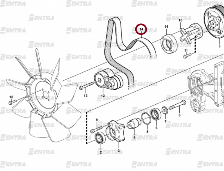 21620133 ремень вентилятора для двигателя гусеничных экскаваторов Volvo EC290B, EC240B, EC300D, EC250D и пр.