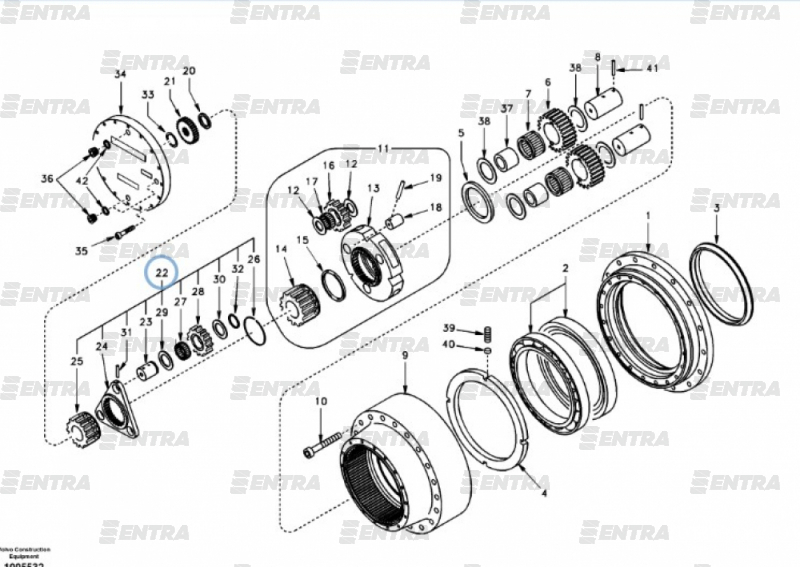 1-я планетарная передача / 1-я ступень хода редуктора хода