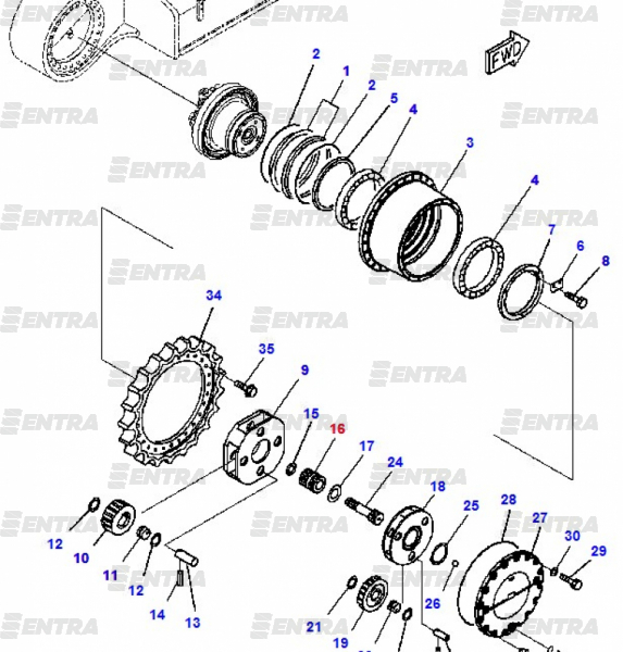 208-27-71130 шестерня солнечная в механизме редуктора хода различных моделей гусеничных экскаваторов