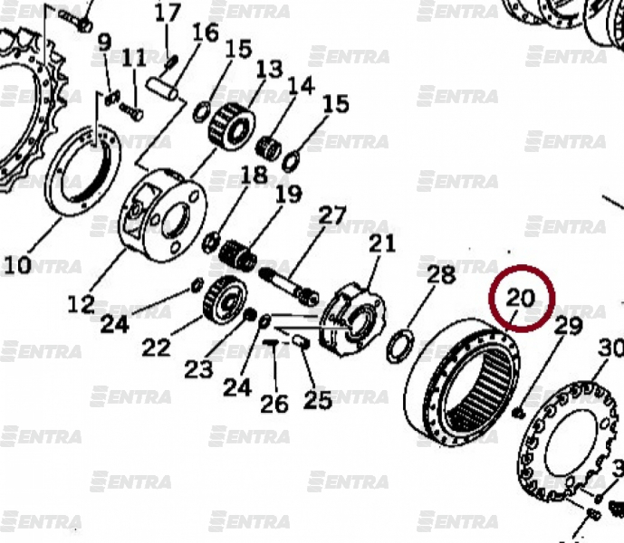207-27-62150 / 2072762150 корончатая шестерня планетарной передачи в механизме редуктора хода различных моделей гусеничных экскаваторов