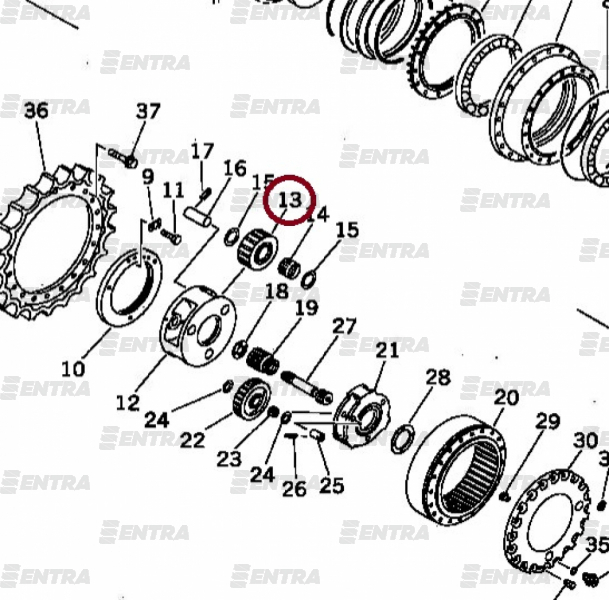 207-27-62140 / 2072762140 шестерня планетарной передачи в механизме редуктора хода различных моделей гусеничных экскаваторов