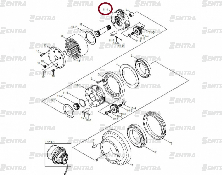 Планетарная передача в сборе применяется в гусеничных экскаваторах Hyundai различных моделей: