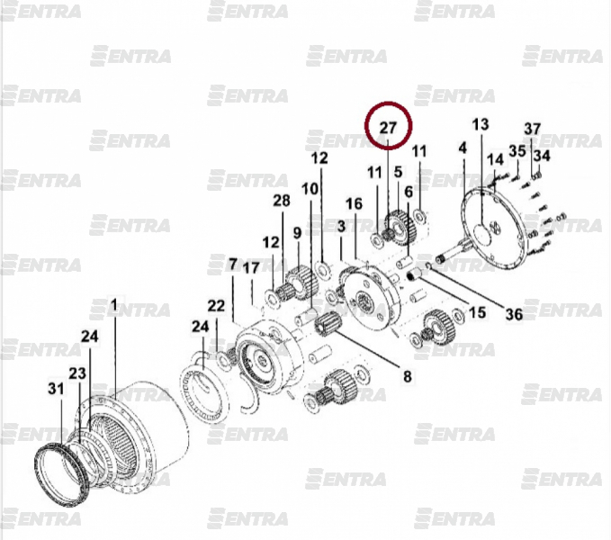 Игольчатый подшипник планетарной передачи в механизме редуктора хода.