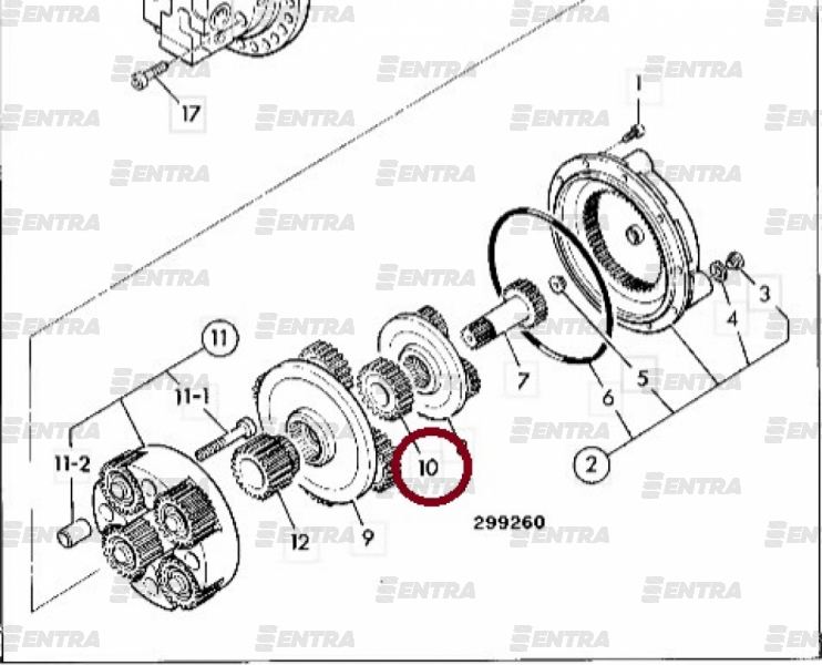 Шестерня солнечная планетаной передачи в механизме редуктора хода