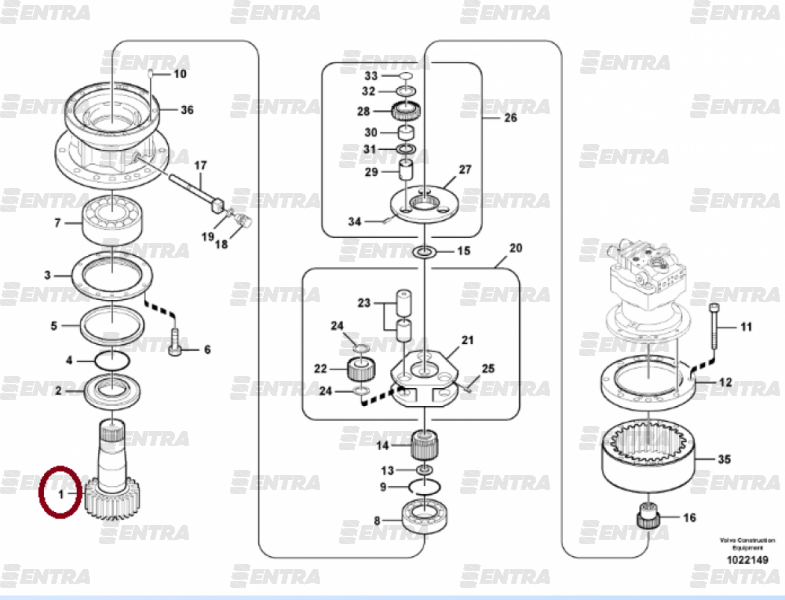 14528929 вал поворотного редуктора гусеничных экскаваторов Volvo EC220D, EC210C, EC235C, FC2421C, PL4611, EC460C, EC210B, EC480D