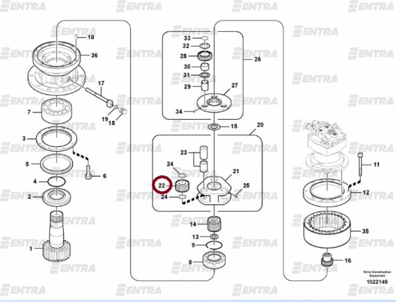 7118-30220 сателлит 2-й планетарной передачи поворотного редуктора гусеничных экскаваторов Volvo EC220D, EC210C, EC235C, FC2421C, PL4611, EC460C, EC210B, EC480D