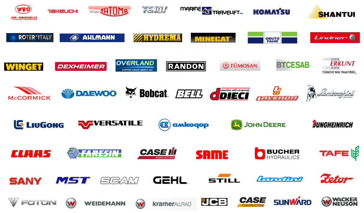 Ниже приведен список производителей спецтехники, для машин которых подходят запчасти Сarraro. Мы готовы подобрать, заказать и доставить их по Вашему запросу!